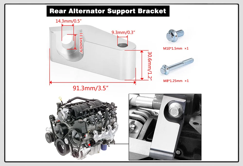 Aluminum Alloy LS/LS1 Alternator Bracket auto product Car accessories Fit for Camaro Durable Generator W/ Rear Brace